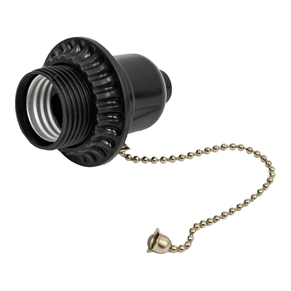 Патрон OXION E27 с вытяжным выключателем пластик черный PH-004