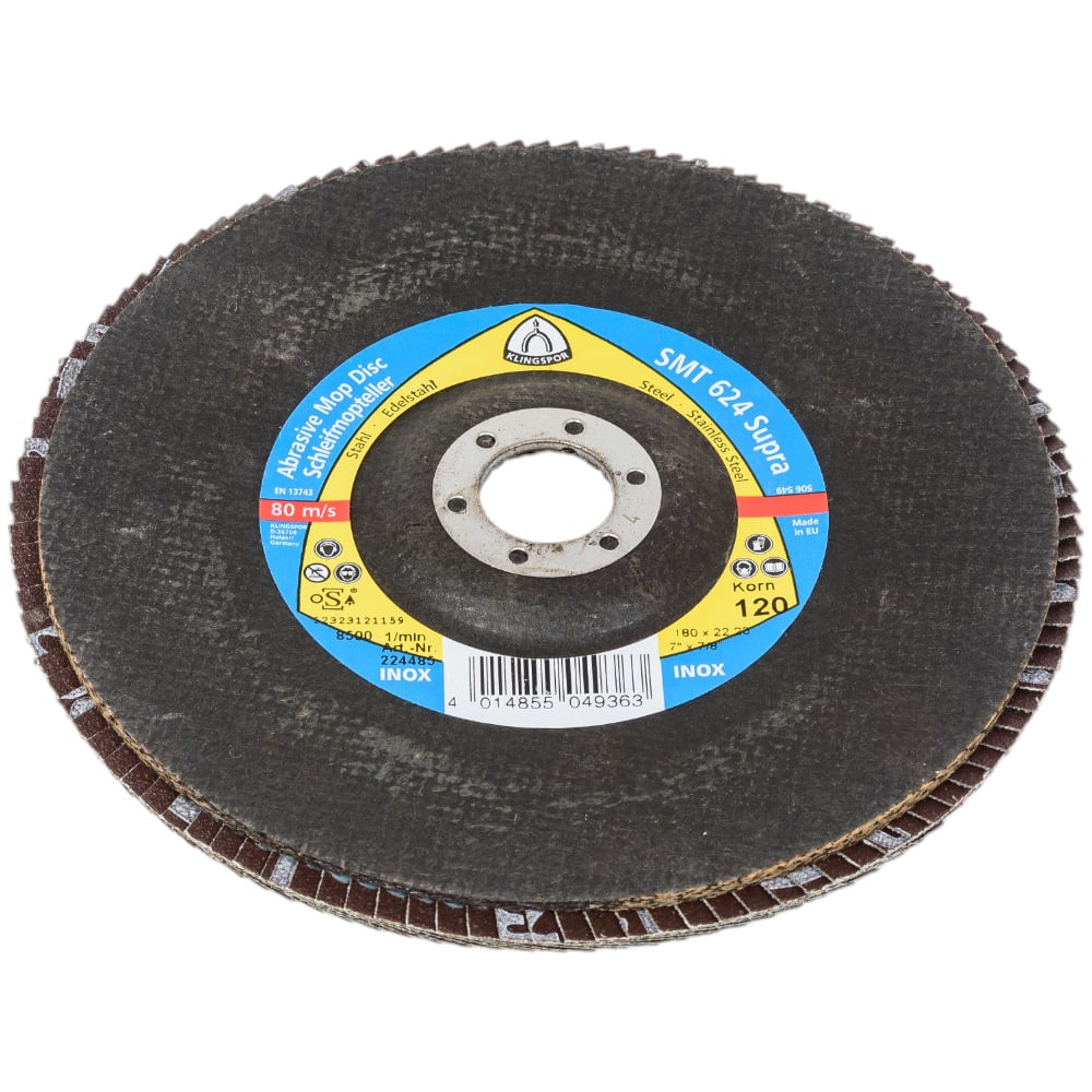 Круг лепестковый тарельчатый SMT 624 Supra 180x22.23 мм, цирконий, Р120, КЛТ-2 Klingspor 224485