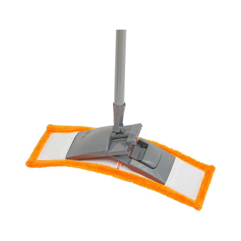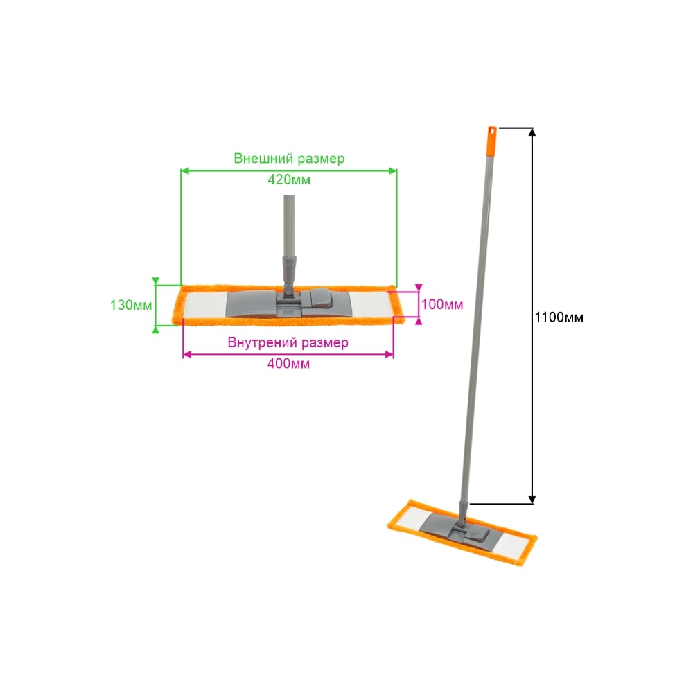 Цвет оранжевый Тип швабра Тип насадки плоская Материал насадки микрофибра Материал рукояти алюминий Телескопическая рукоятка нет Длина ручки 1100 мм Наличие ручки есть С отжимом нет С распылителем нет Длина насадки 400 мм Тип крепления насадки карман Гибкое основание нет Ширина насадки 120 мм