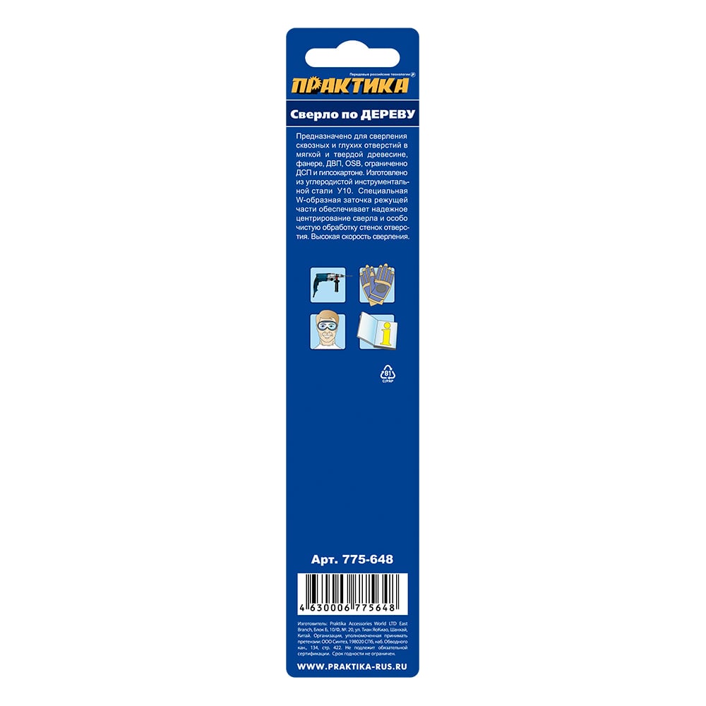 Сверло по дереву ПРАКТИКА 775-648