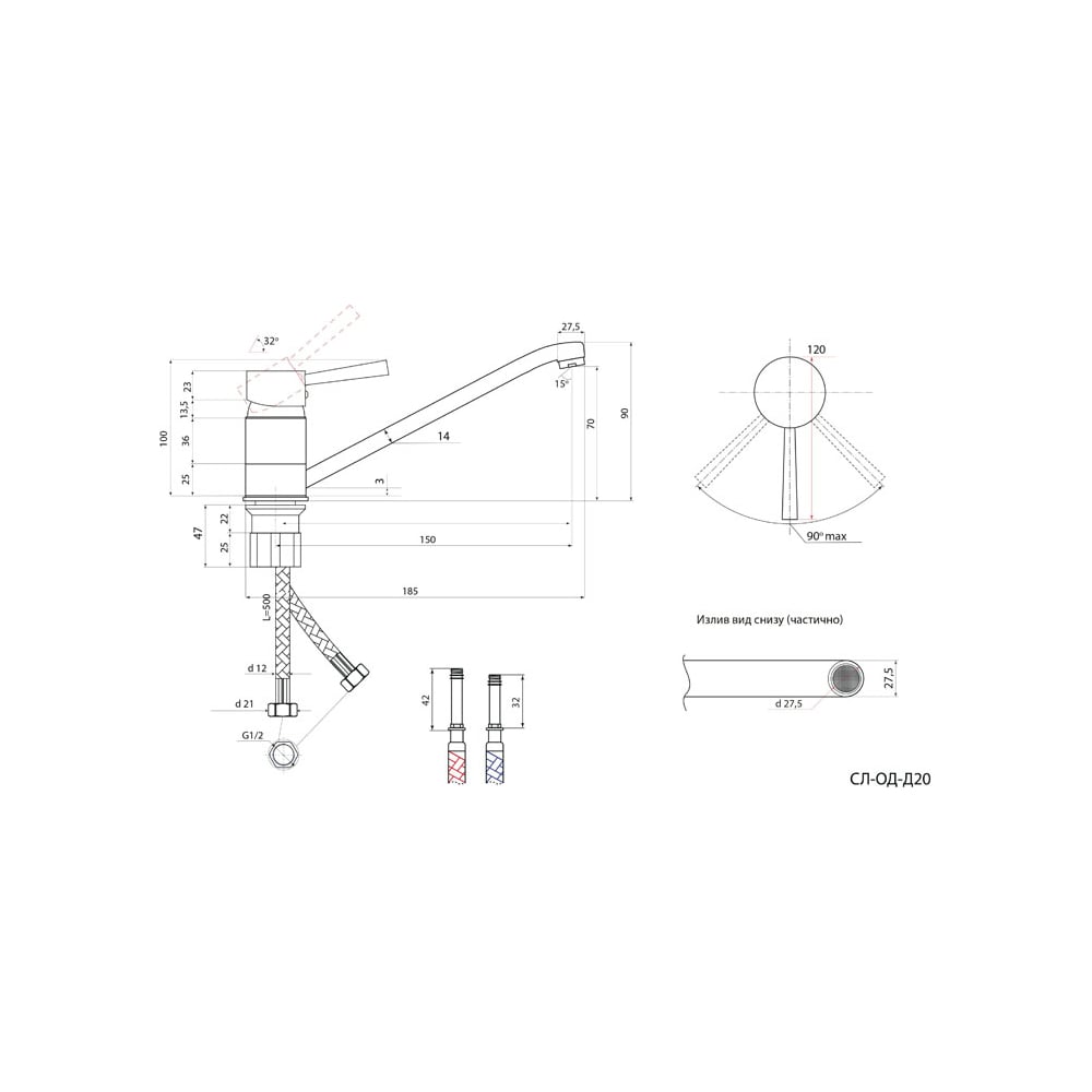 | Длина излива | 150 мм |