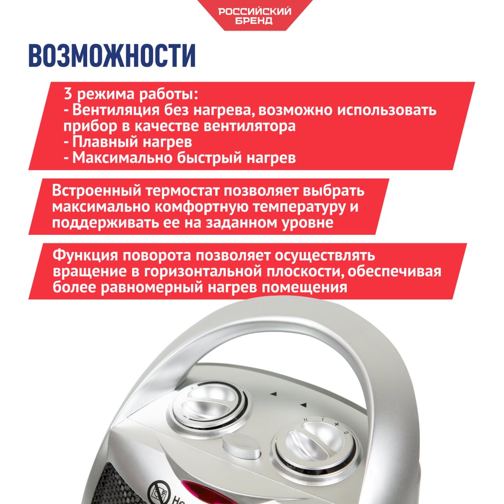 Габариты без упаковки 265х100х205 мм Цвет серый Вес нетто 1.45 кг Материал корпуса пластик Вид крепления напольный Серия ТВC Напряжение 220 В Рекомендуемая площадь 20 м² Max мощность 1.8 кВт Управление механическое Защита от перегрева да Количество режимов нагрева 2 Функция поворота да Пульт ДУ нет Нагревательный элемент керамический С фильтром нет