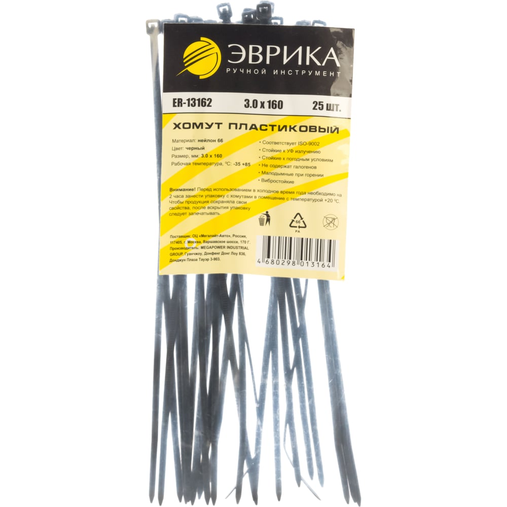 Пластиковый хомут черный 3.0x160мм универсальный 25шт Эврика ER-13162 956499