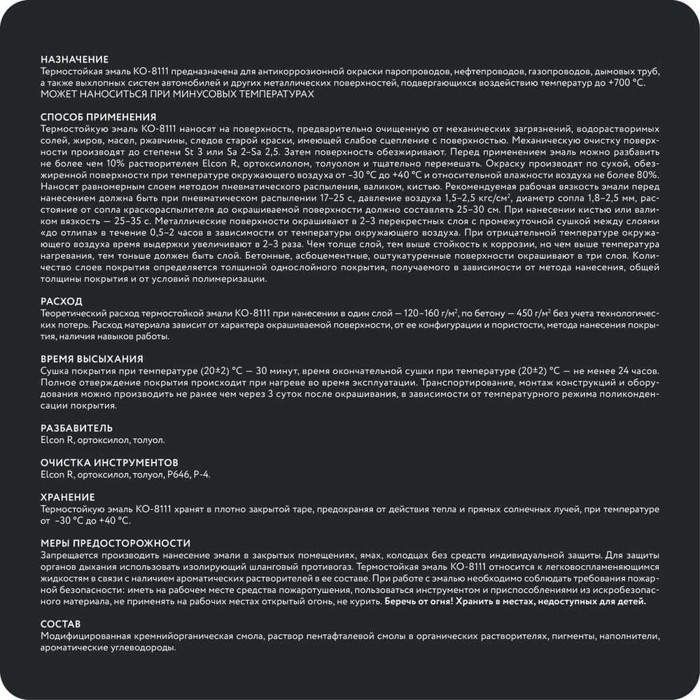 | Расход краски | 0.12-0.22 кг/м² |