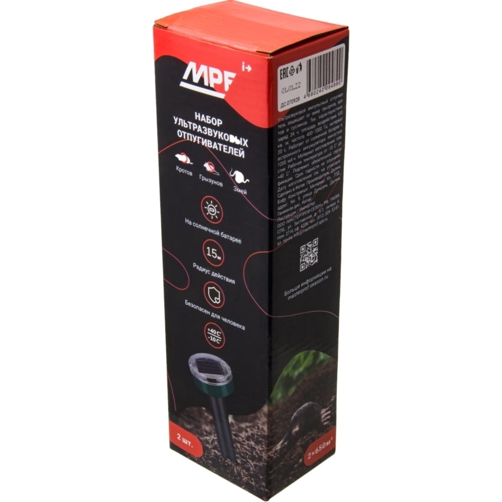 Ультразвуковой импульсный отпугиватель MPF на солнечной батарее, от кротов и змей, 2 шт., 26 см ДС.070928