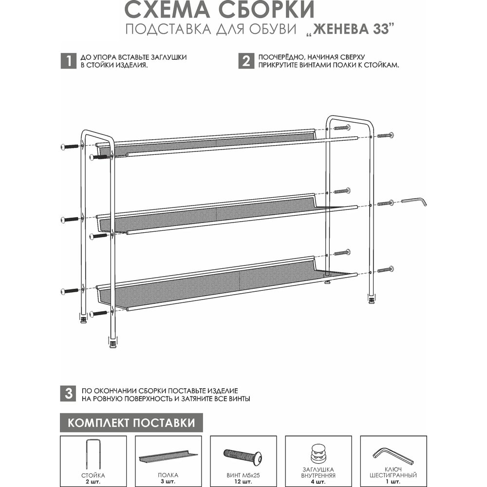 Обувница Этажерка для обуви ЗМИ 3-х полочная Женева 33 12 пар обуви Цвет черный ПДО Ж33 Ч ПДО Ж33 Ч