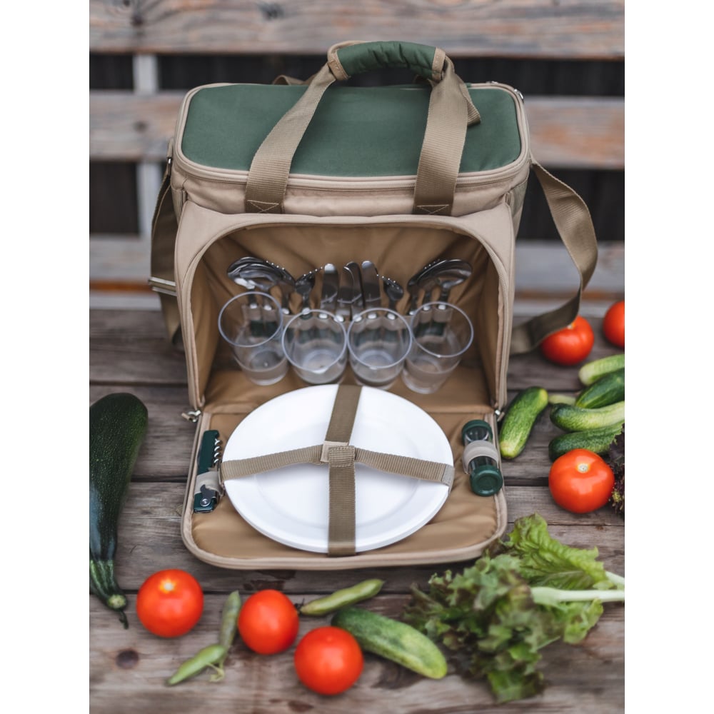 Сумка-холодильник Арктика 4100-3-GN пикниковый набор 3 чел, зеленая