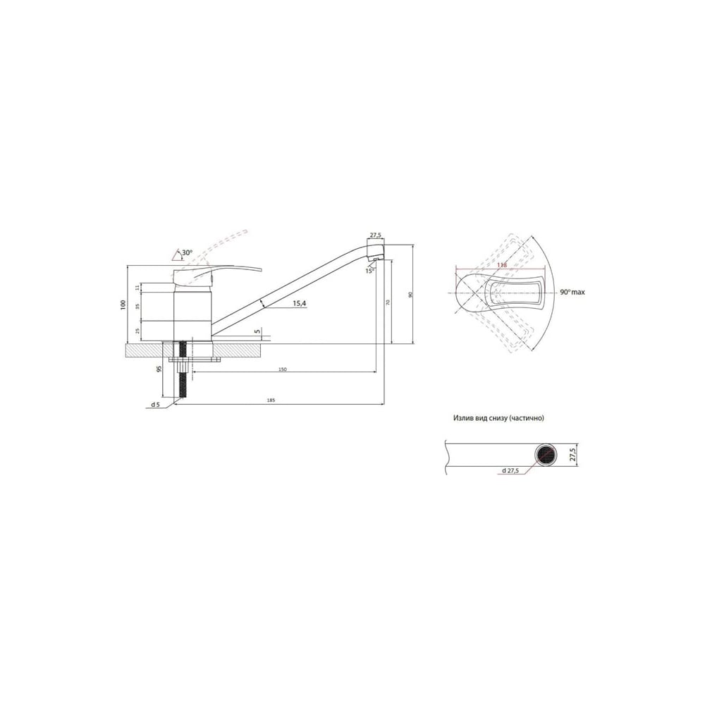| Длина излива | 150 мм |