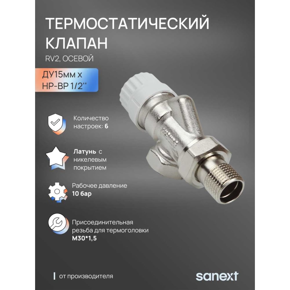 Термостатический клапан SANEXT RV2 осевой Ду15мм, НР-ВР 1/2" 6617
