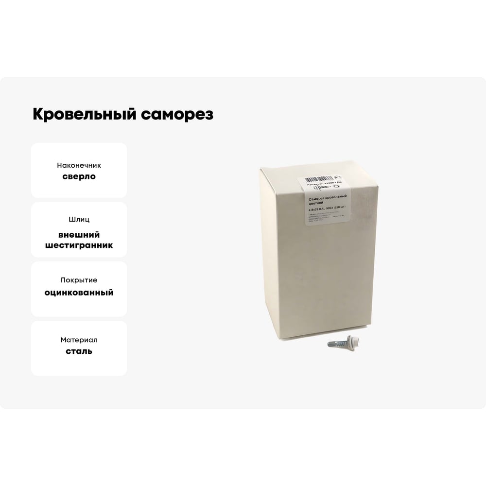 Кровельный саморез крепежная техника 4,8х29 RAL9003 белый (250 шт.) 420202