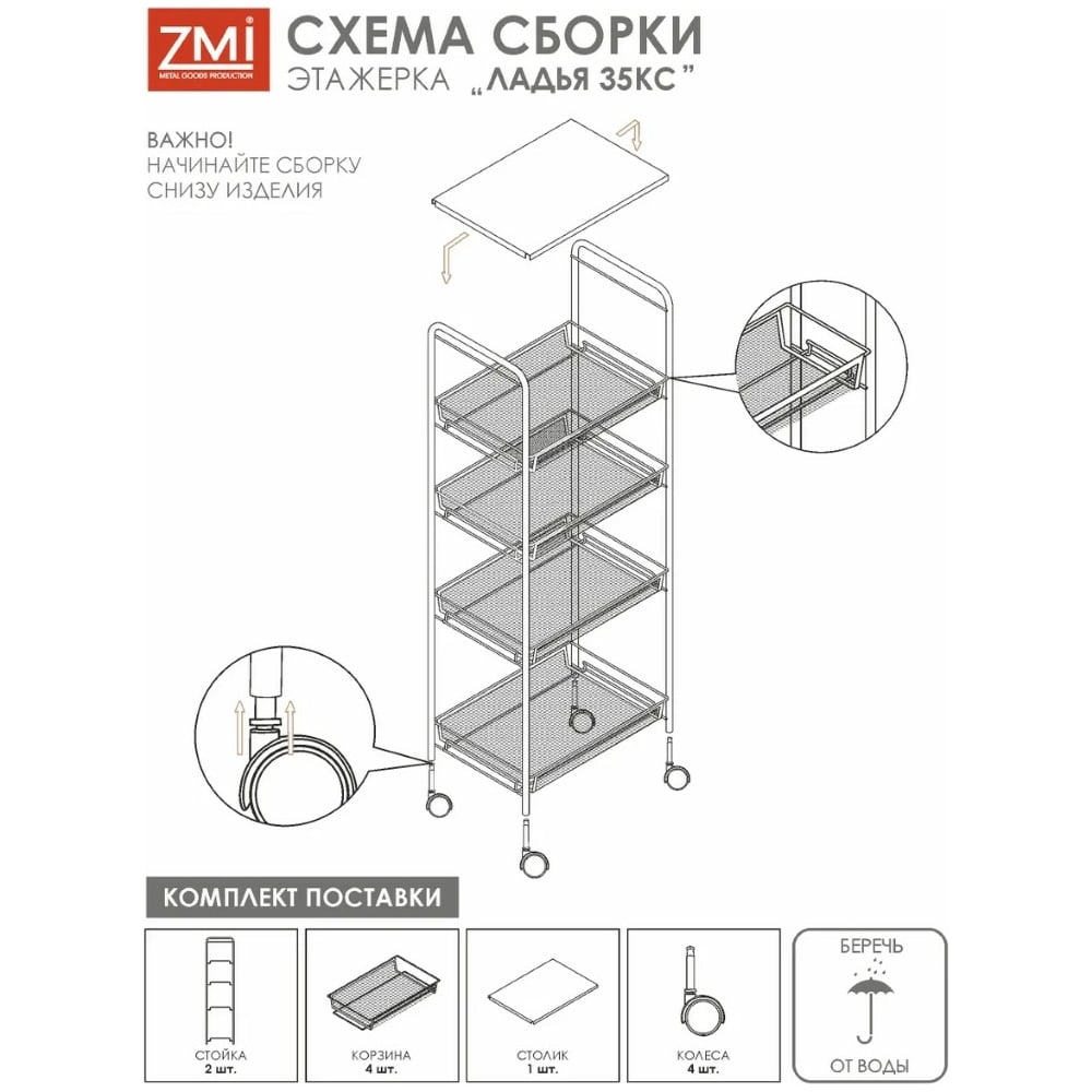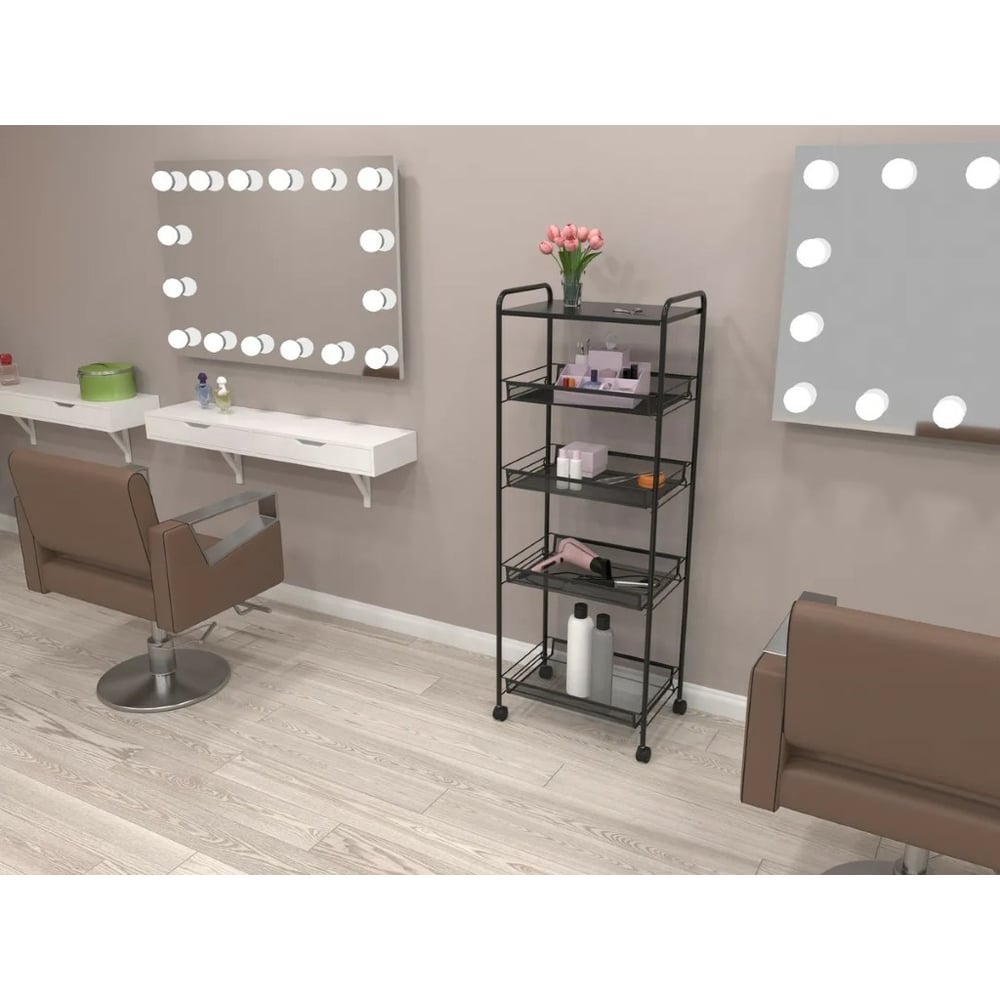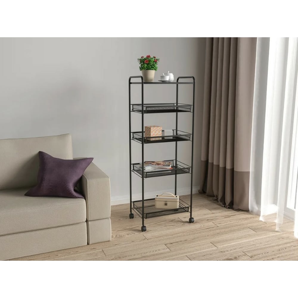 Этажерка Стеллаж для хранения ЗМИЛадья 35КС 4 полки с колёсами цвет черный Э 410 Ч Э 410 Ч