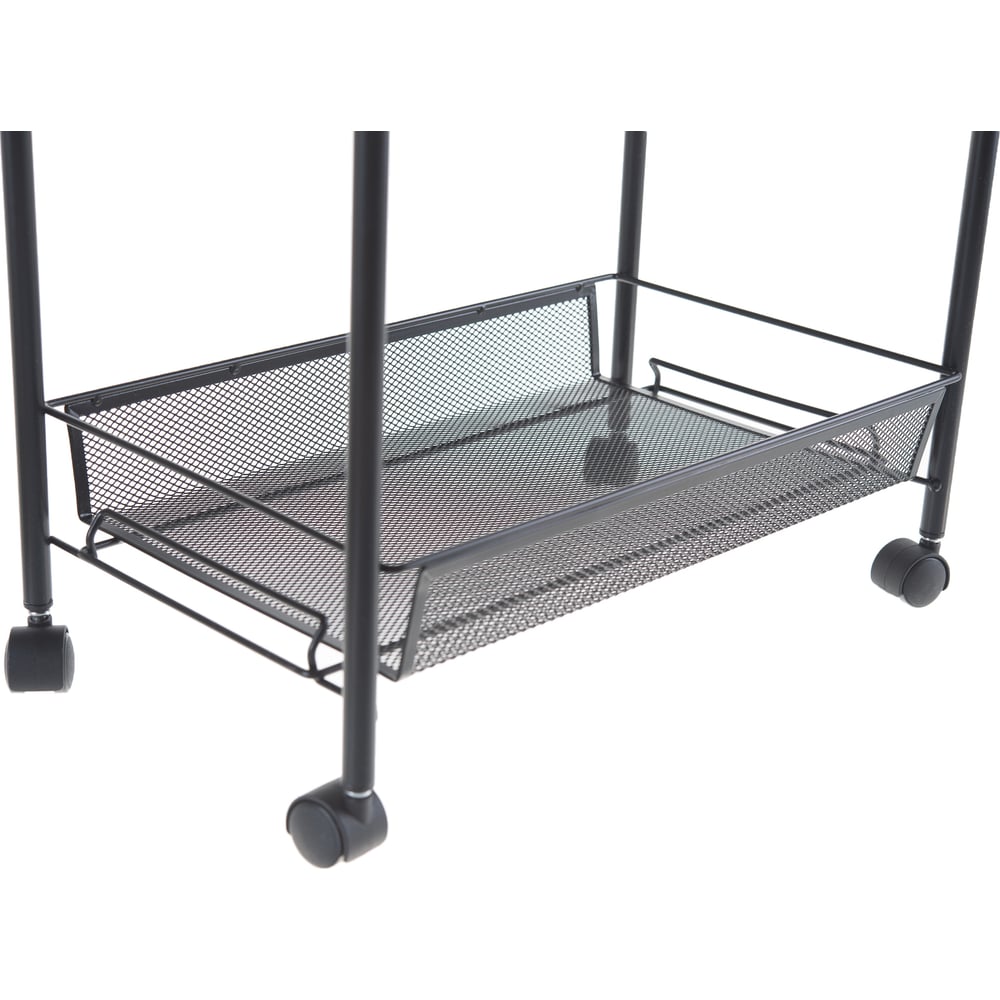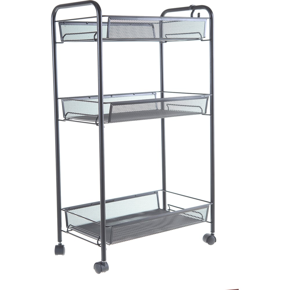Габариты без упаковки 440х250х755 мм Высота 755 мм Материал металл, пластик Ширина 440 мм Цвет черный Вес нетто 3.1 кг Глубина 250 мм Количество полок 3 шт Наличие колес есть