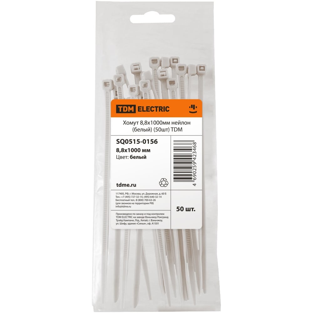 Хомут TDM ELECTRIC 8,8х1000 мм, нейлон, белый, 50 шт. SQ0515-0156