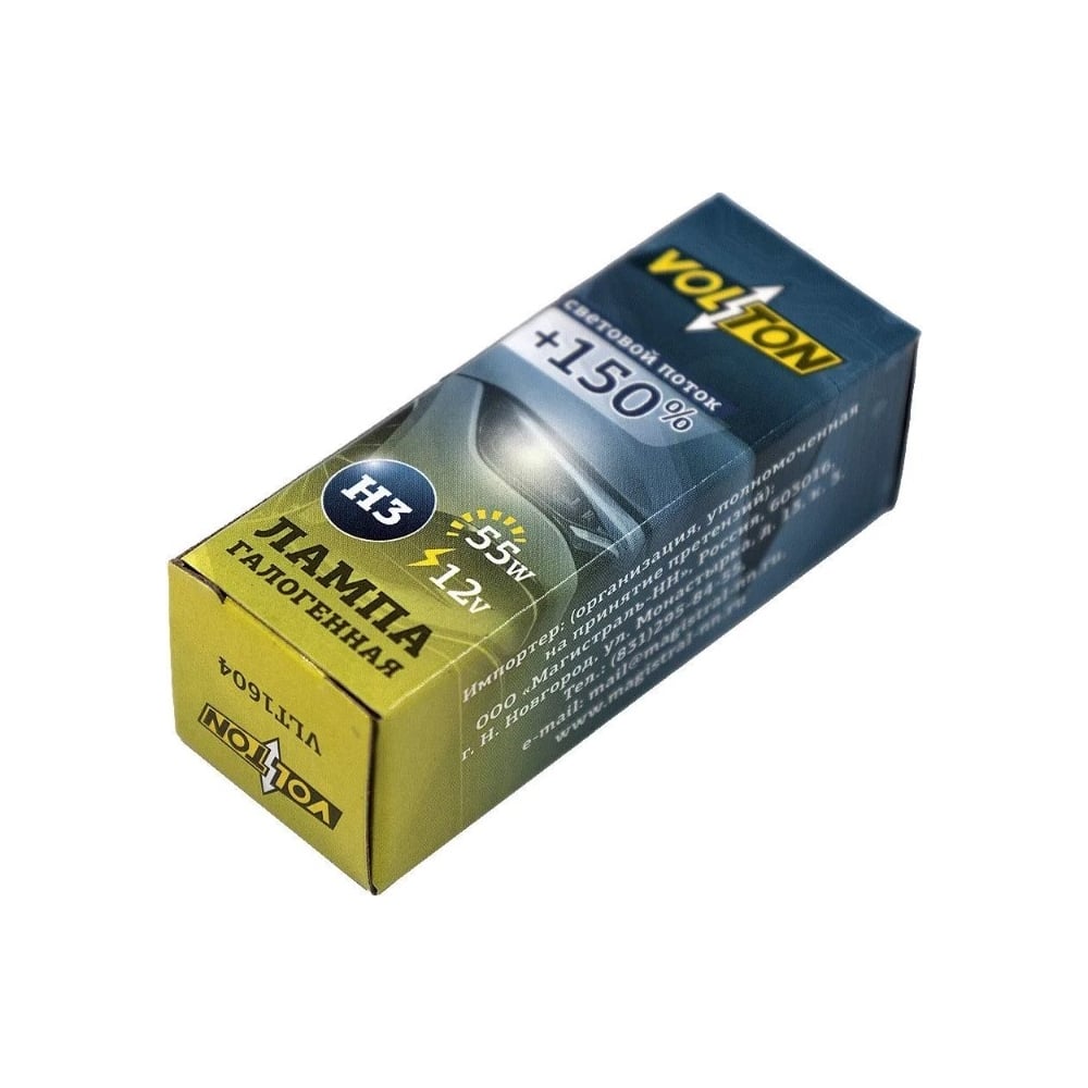 Галогенная лампа VOLTON H3, 12 В, 55 Вт, РK22S +150% VLT1604
