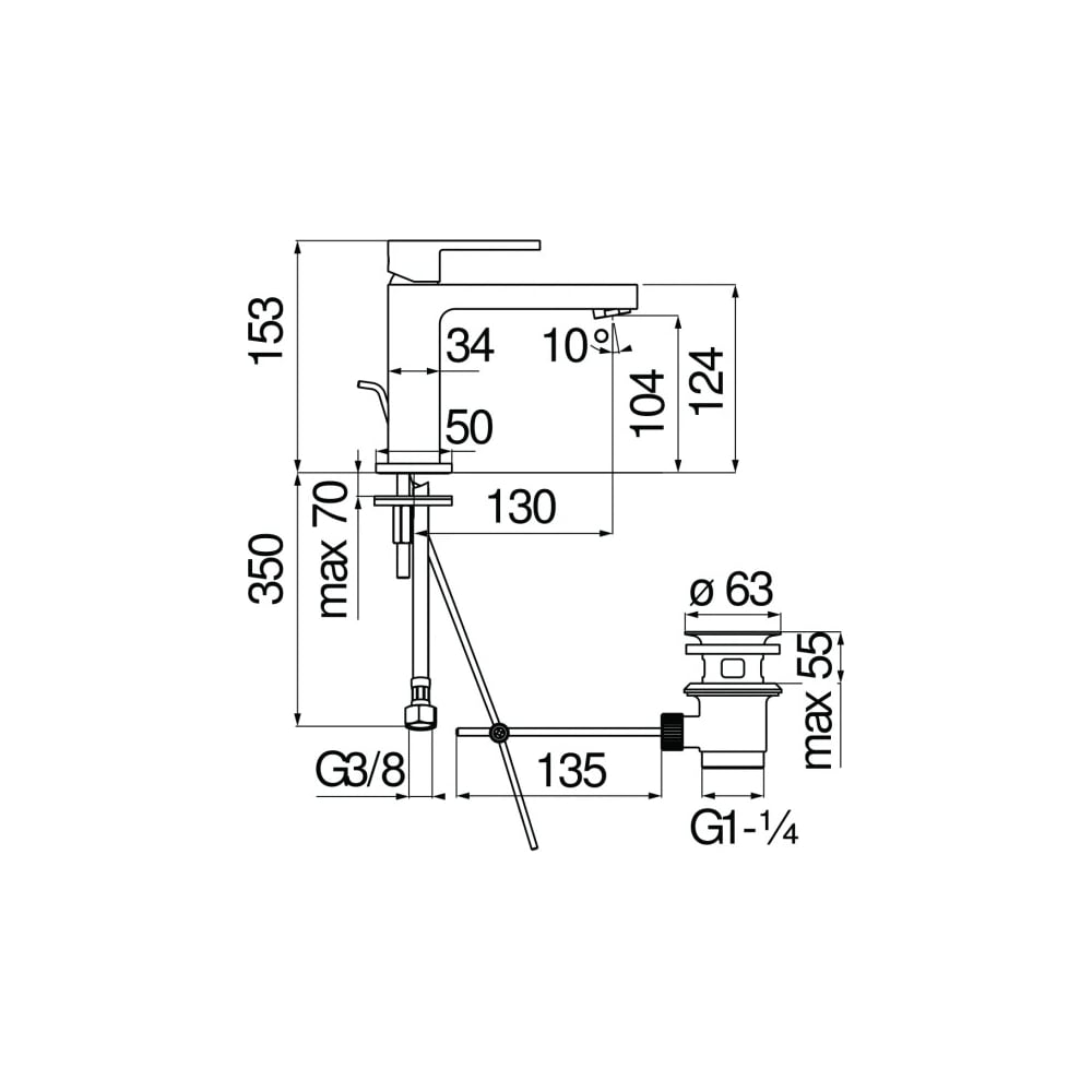 | Высота смесителя | 153 мм |