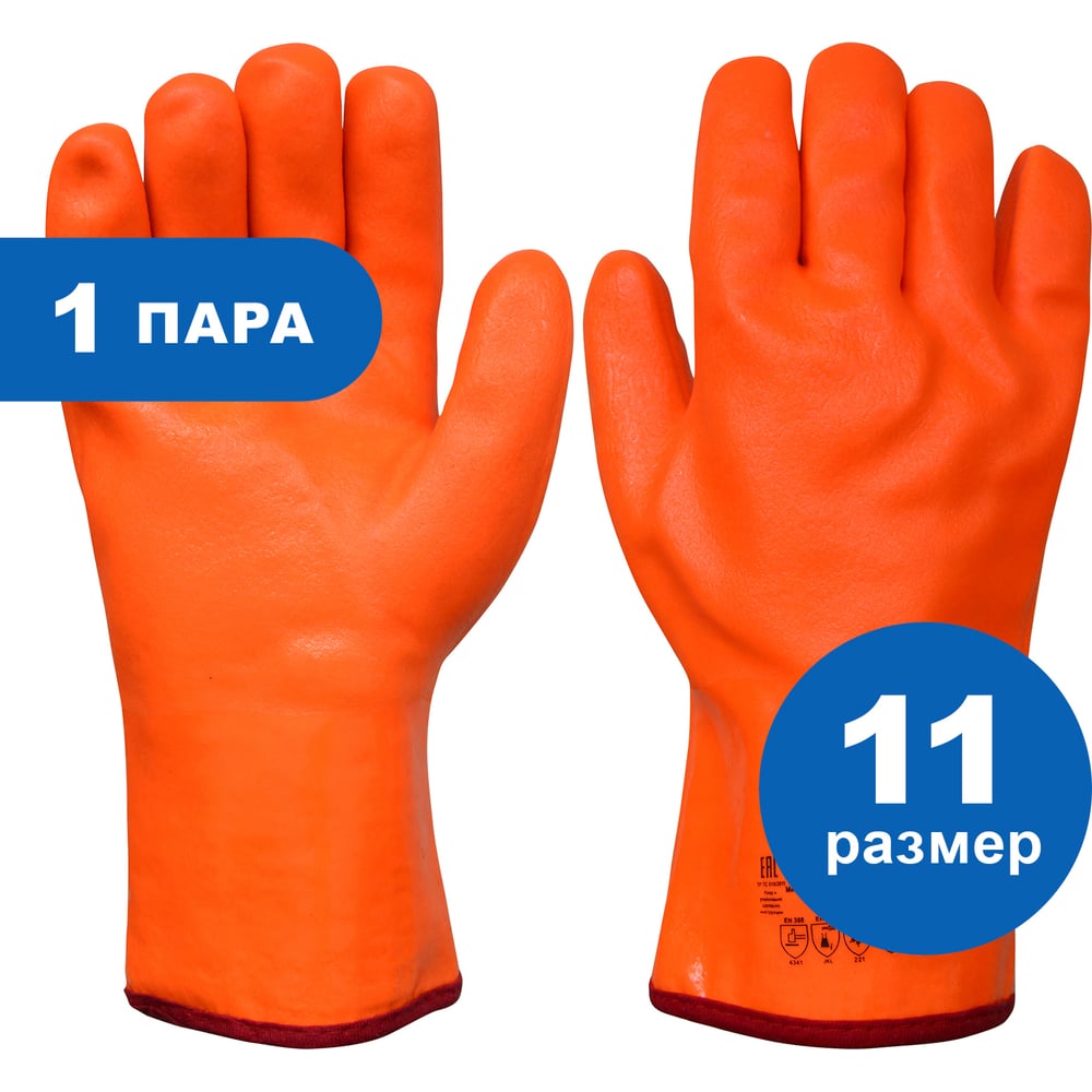 Трикотажные перчатки ARCTICUS х/б, с ПВХ, оранжевые, нефтеморозостойкое покрытие, р.11 1602300 W-111