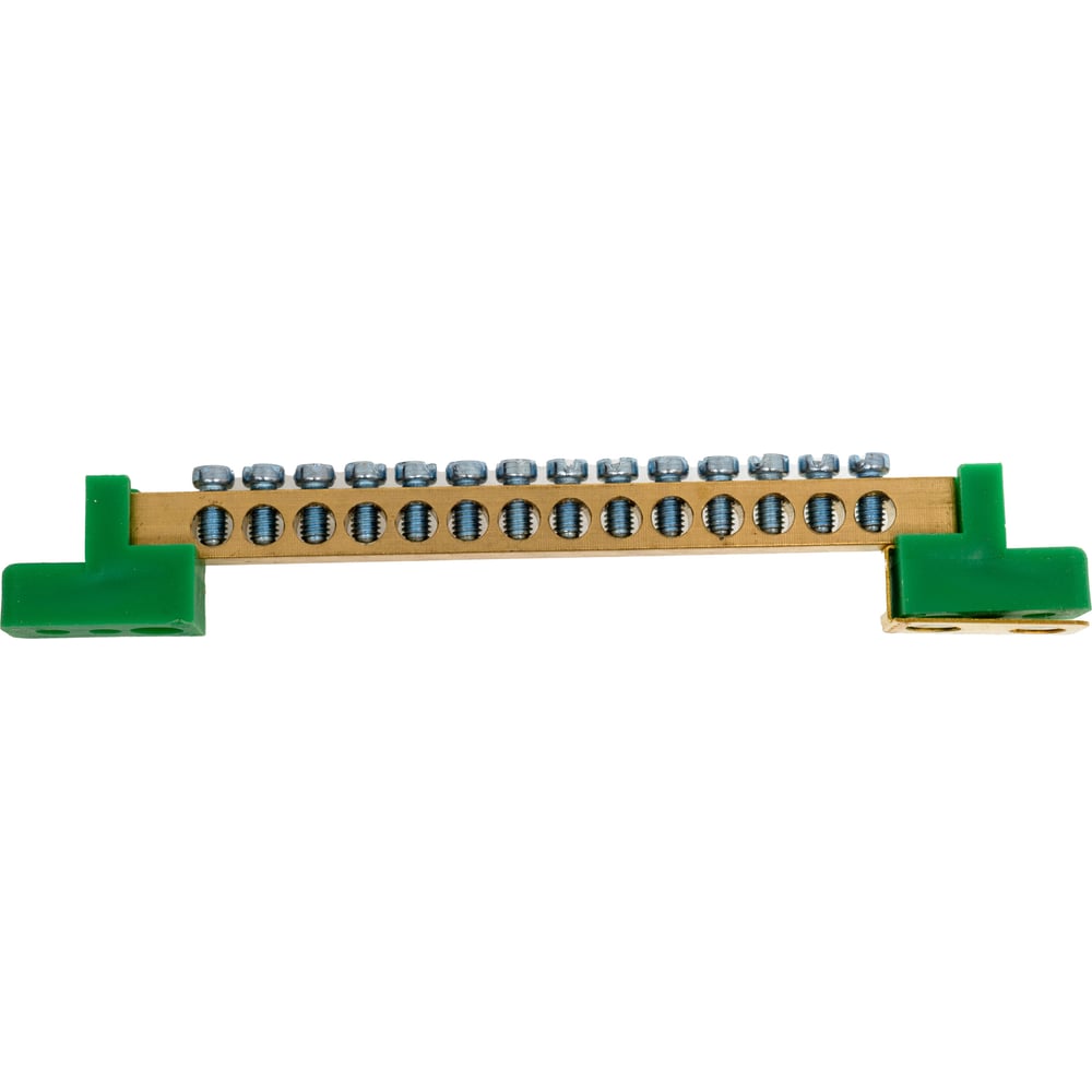 EKF Шина "0" PE 6x9мм 14 отверстий латунь с контактной пластиной 2 зелёных угловых изолятора (20 шт.) PROxima sn0-63-14-2-pe