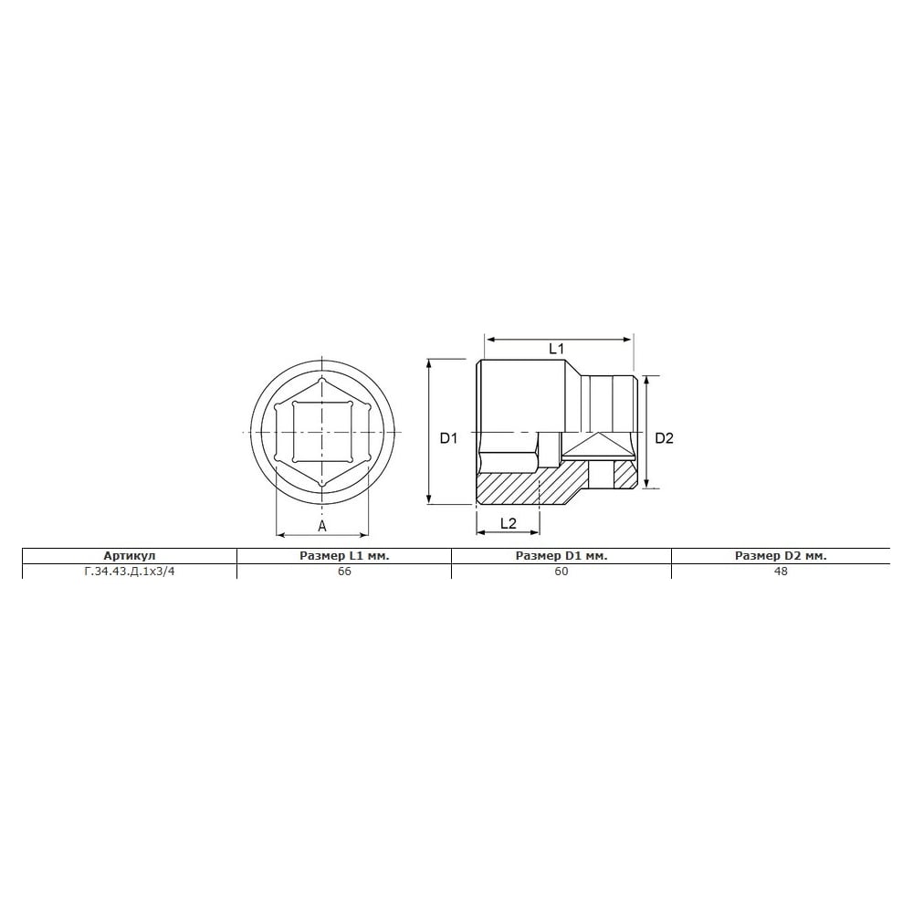 Головка торцевая 6-гранная (1 3/4''; 3/4'') Станкоимпорт Г.34.43.Д.1х3/4