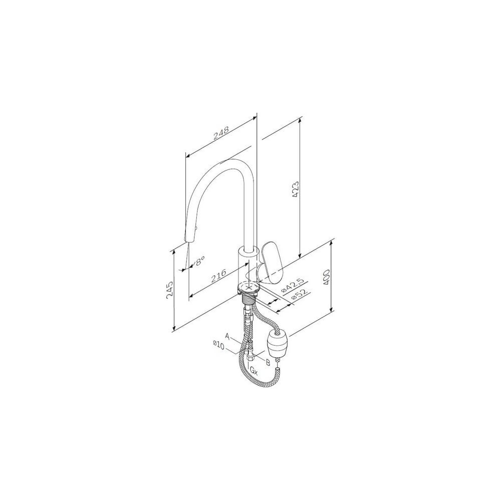 | Высота смесителя | 423 мм |