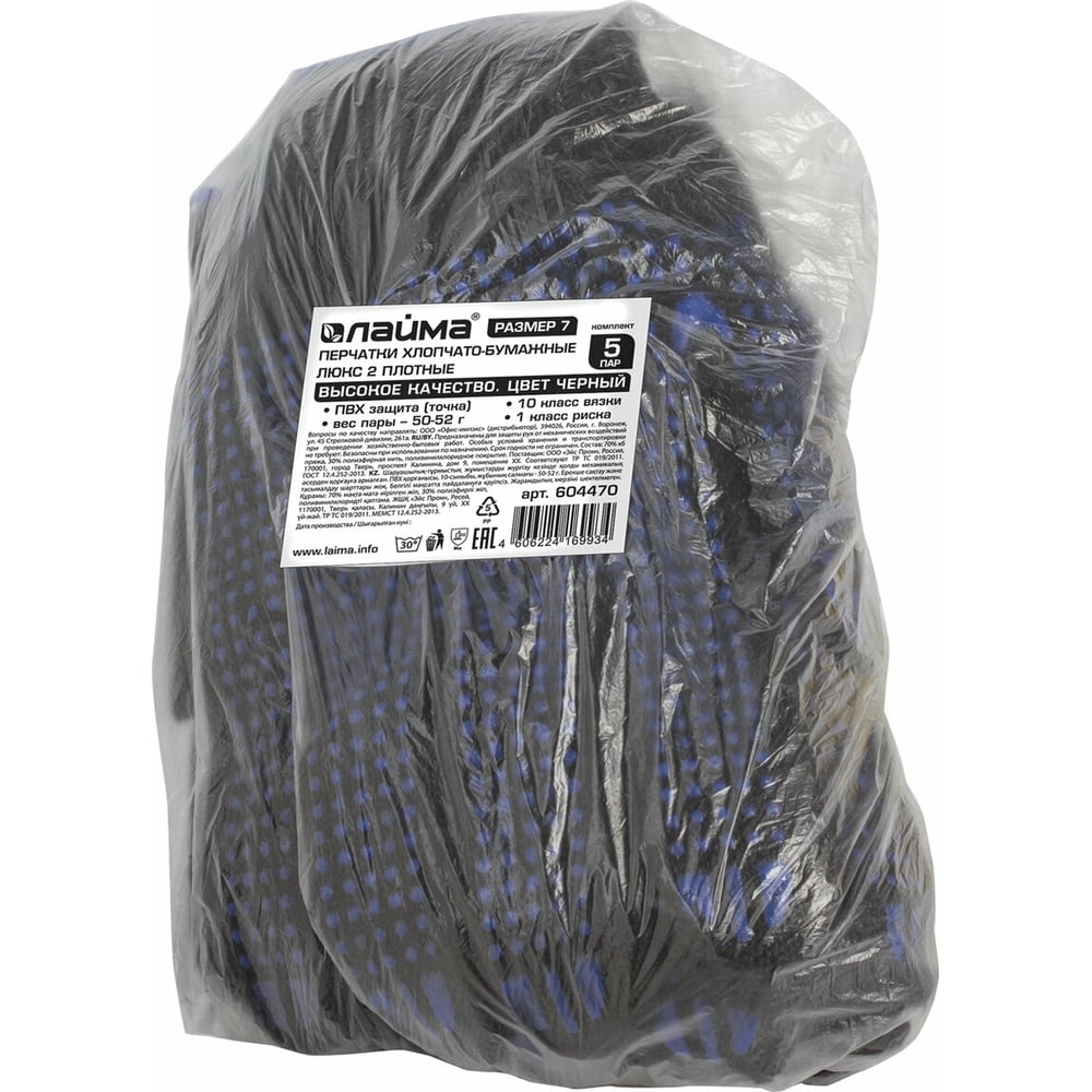 Хлопчатобумажные перчатки LAIMA 10 класс,5 пар, 604470