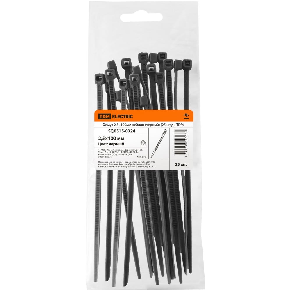 Хомут TDM ELECTRIC 2,5х100 мм, нейлон, черный, 25 штук SQ0515-0324