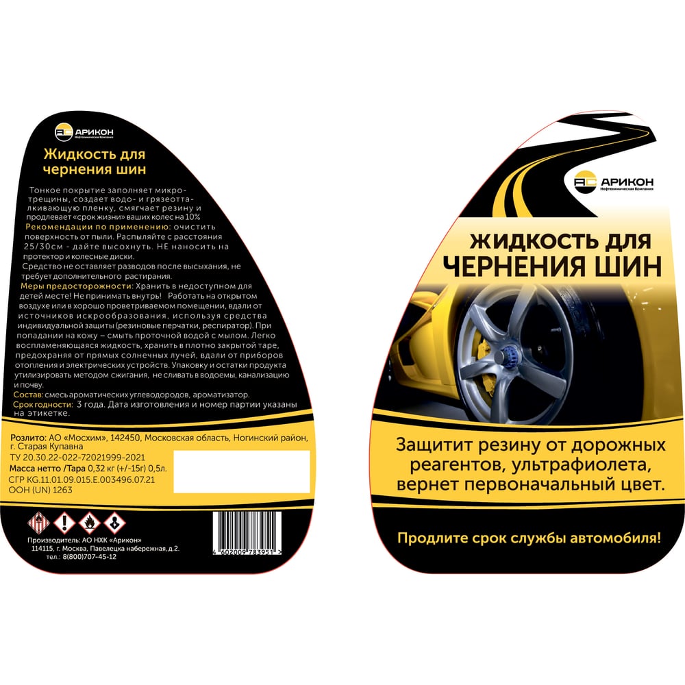 Жидкость для чернения шин АРИКОН флакон, 0.5 л JCH0500
