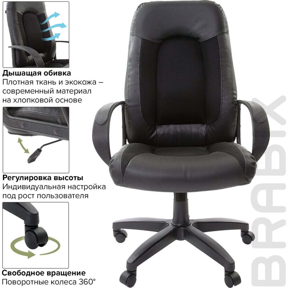 Компьютерное офисное кресло руководителя BRABIX Strike EX-525, с подлокотниками, экокожа 531381
