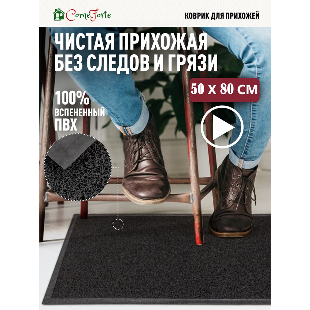 Придверный пористый коврик ComeForte Spaghetti 50х80 см черный SPM-04
