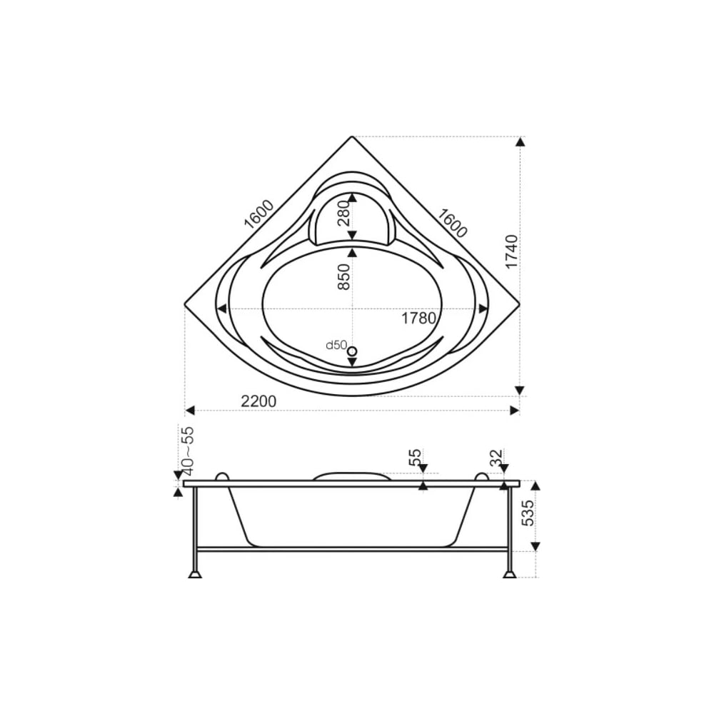 Ванна BAS Мега 1600х1600 каркас, комплект д/с В 00024