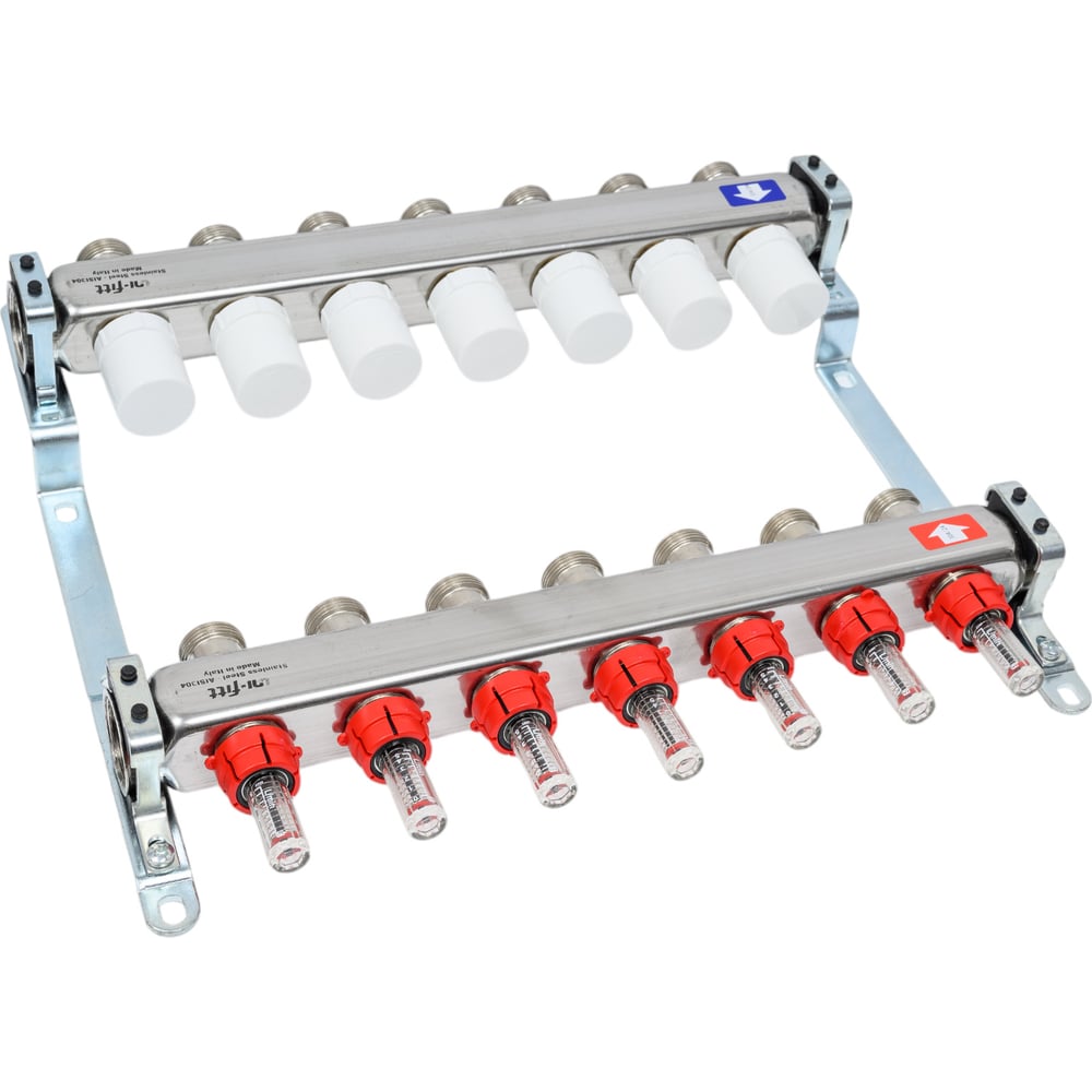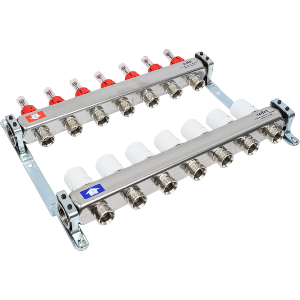 Коллекторная группа 1х3/4, 7 выходов, с расходомерами и термостатическими вентилями, нерж. сталь Uni-Fitt 450I4307