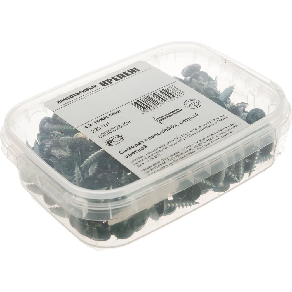 Прессшайба Качественный КРЕПЕЖ 4.2х19 мм, зеленый мох RAL 6005, острая, 220 шт 0200223 КЧ