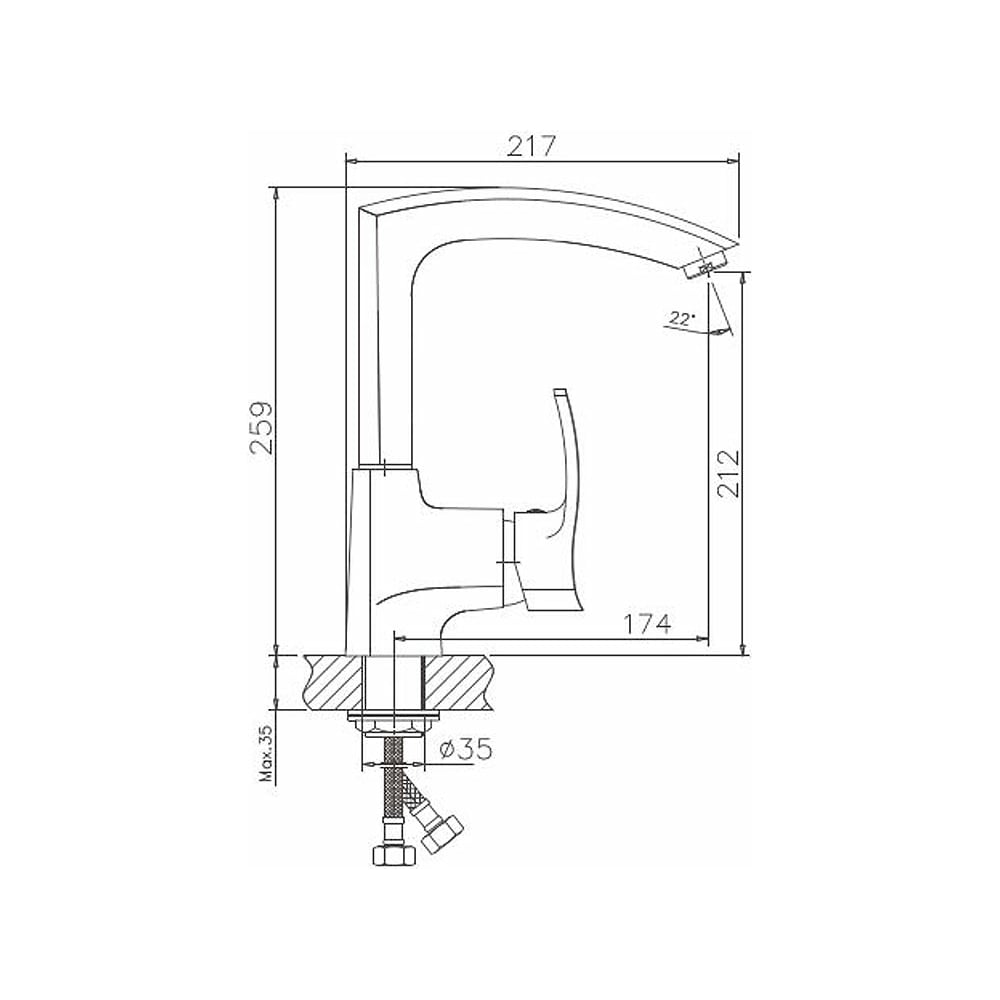 | Диаметр отверстия в раковине | 35 мм |