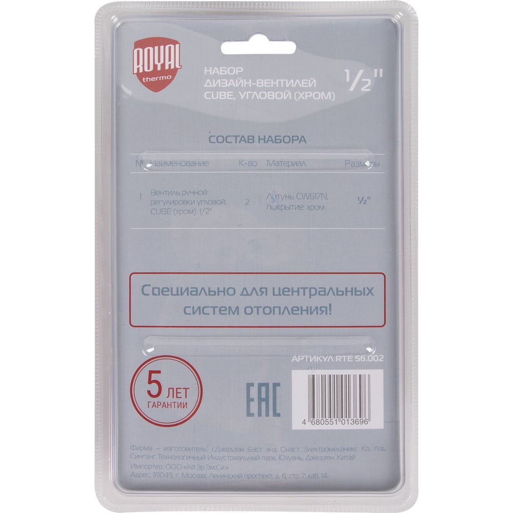 Набор дизайн-вентилей ROYAL THERMO CUBE угловой, хром, 1/2" НС-1193191