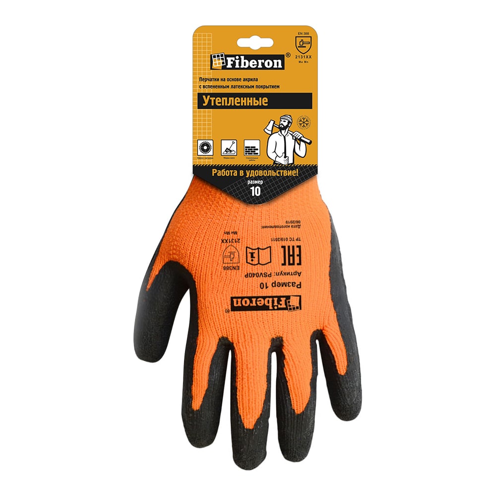 Утепленные перчатки Fiberon, акрил, вспененное латексное покрытие, в и/у, 10(XL), оранжевый+черный, 127858