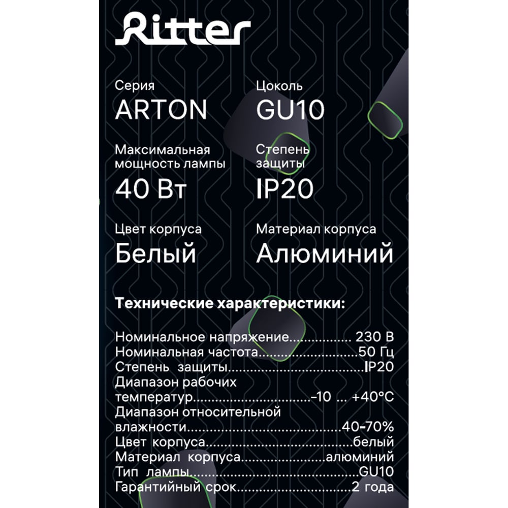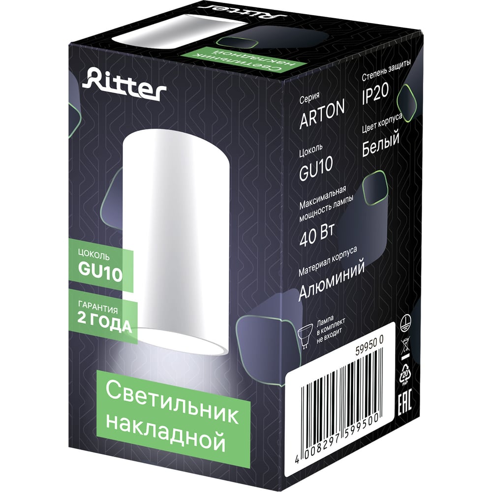 Накладной светильник Ritter Arton цилиндр, 55x100, GU10, алюминий, белый 59950 0