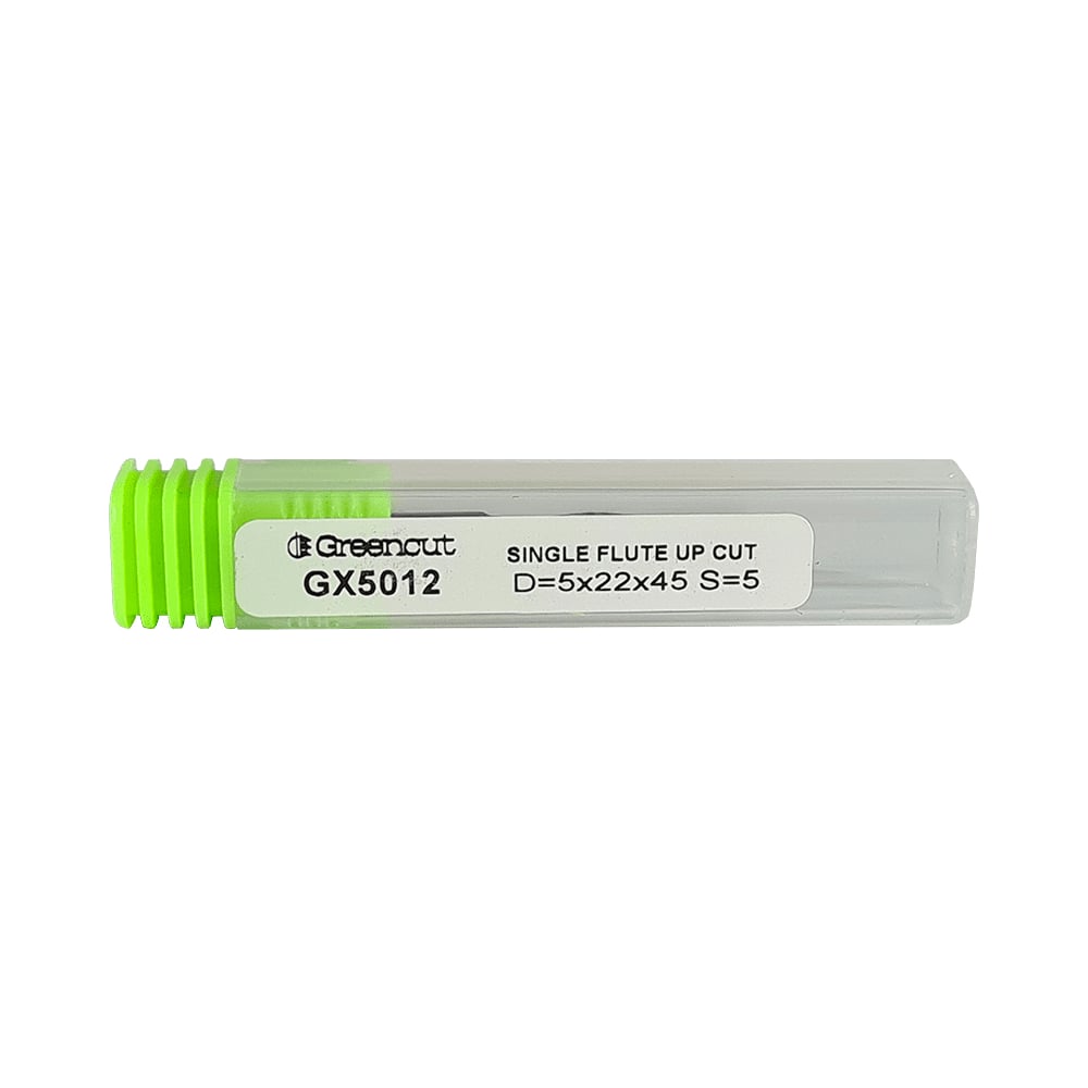 Фреза спиральная однозаходная верхний рез для ЧПУ (5x22x45 мм; S=5 мм; Z1) Greencut GX5012