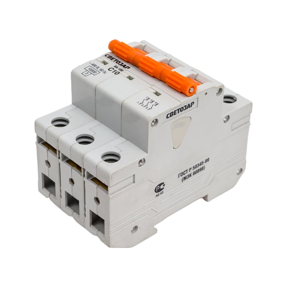 Автоматический выключатель СВЕТОЗАР 3-полюсный, 10 A, C, откл. сп. 10 кА, 400 В SV-49073-10-C