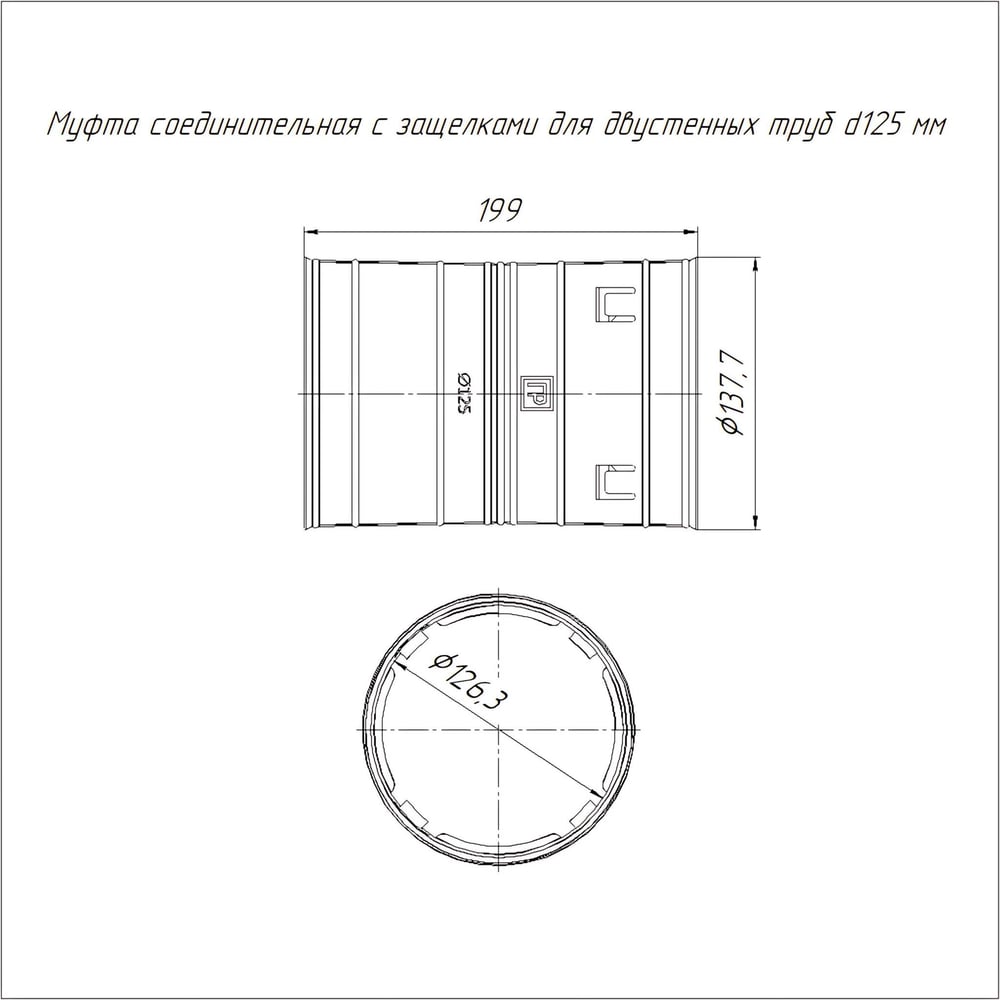Соединительная муфта с защёлками для двустенных труб Промрукав д125 PR08.3100
