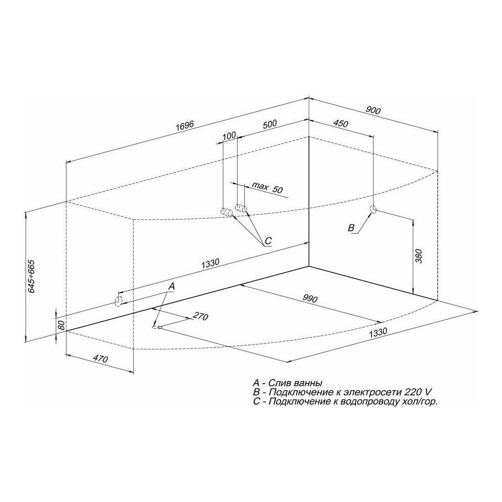 | Глубина ванны | 484 мм |