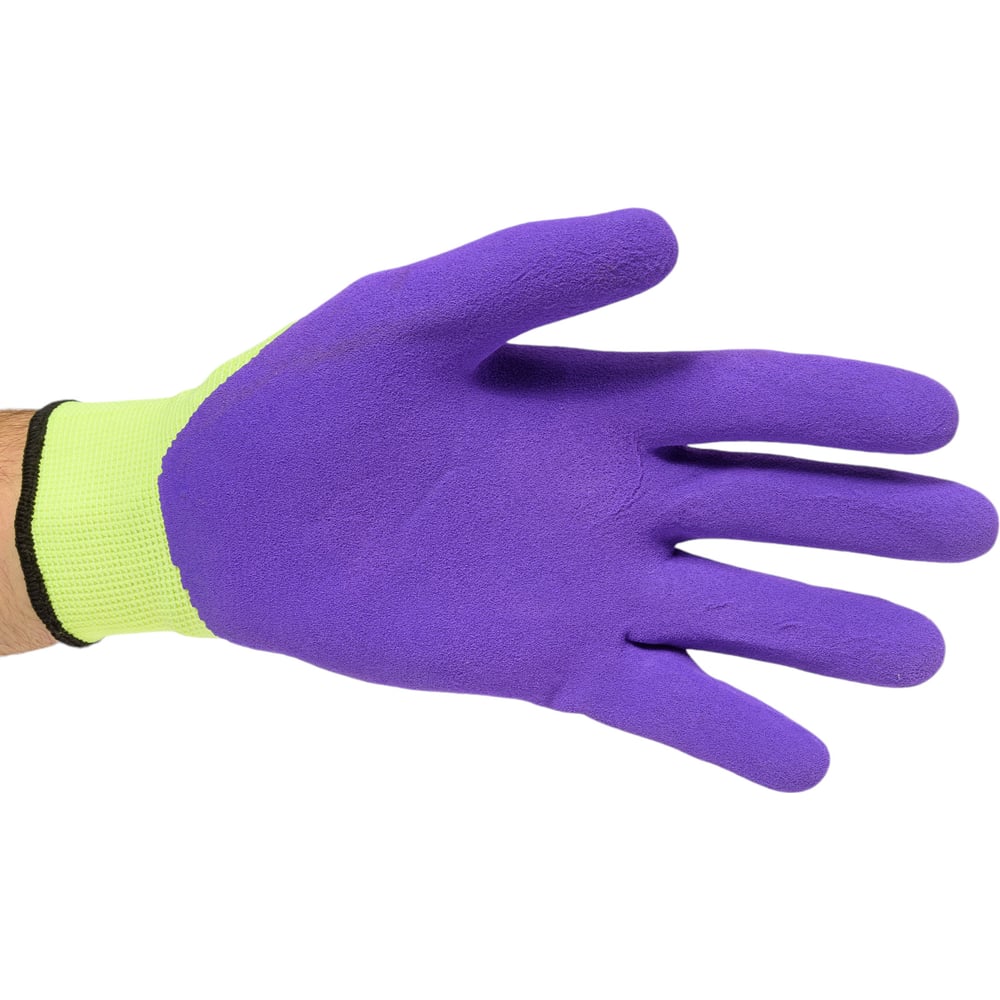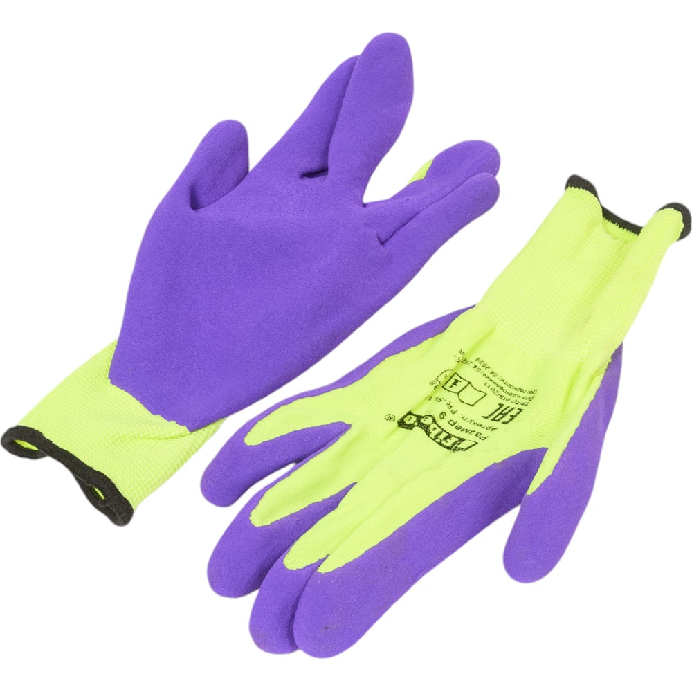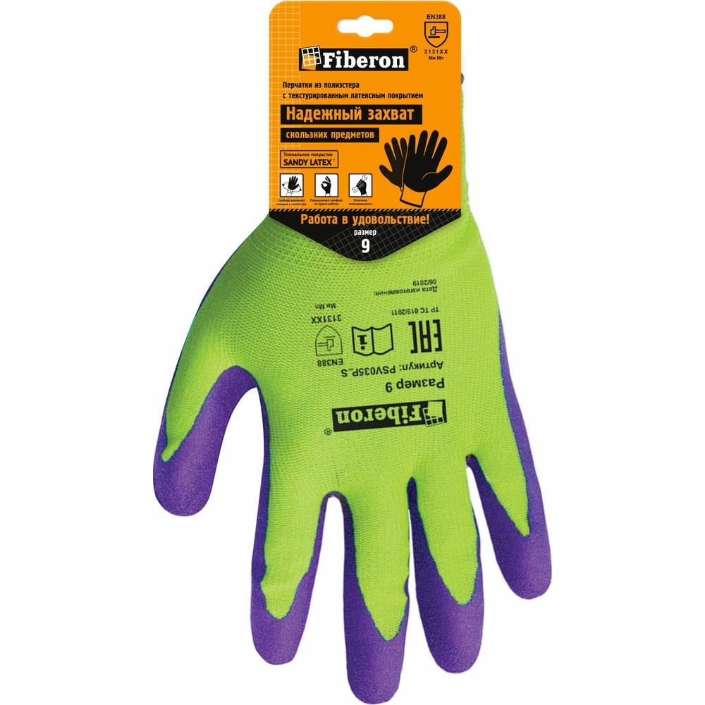 Суперкомфортные перчатки Fiberon полиэстер, покрытие Sandy Latex, в и/у, 9(L), салатовый+фиолетовый, 120870