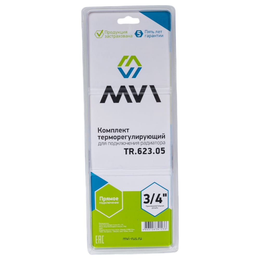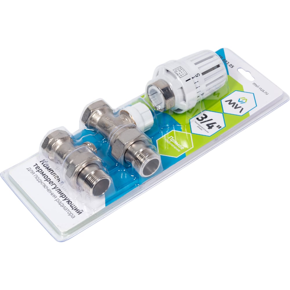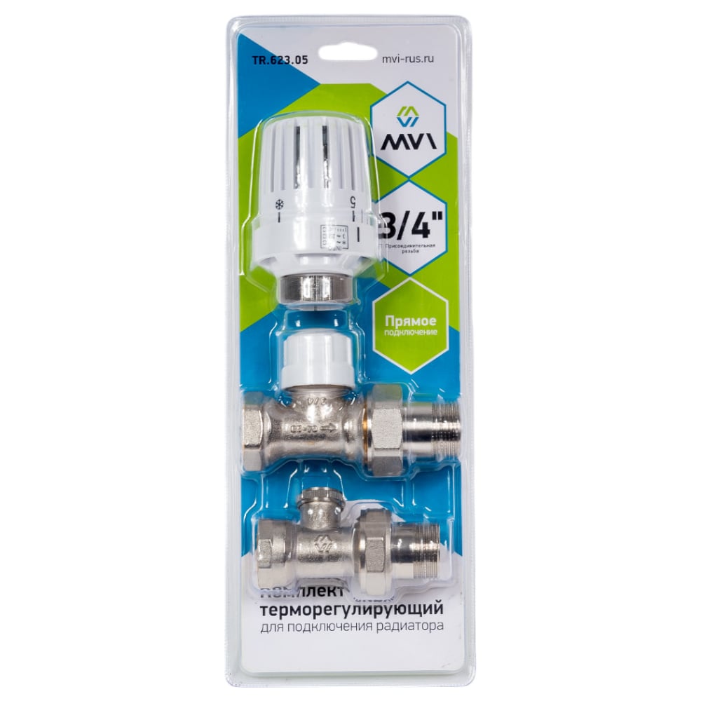 Терморегулирующий комплект для подключения радиатора MVI прямой, 3 в 1 3/4" TR.623.05