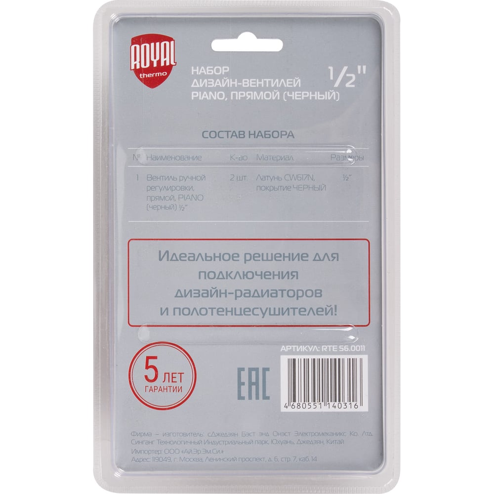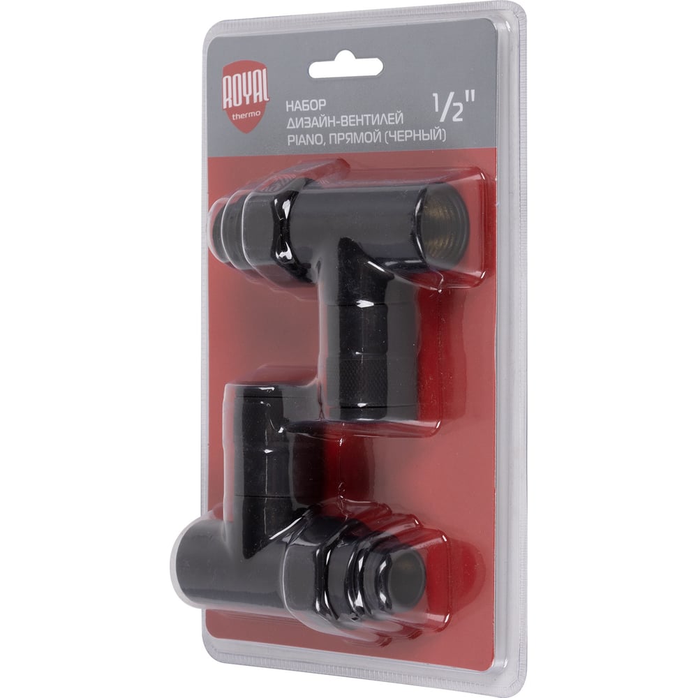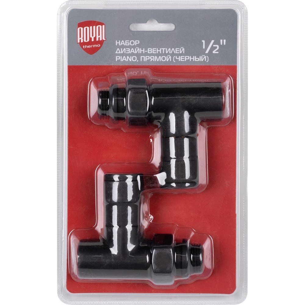 Набор дизайн-вентилей ROYAL THERMO PIANO прямой (черный) 1/2 НС-1422580