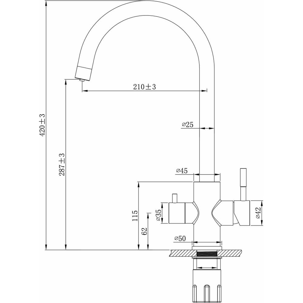 | Высота смесителя | 420 мм |