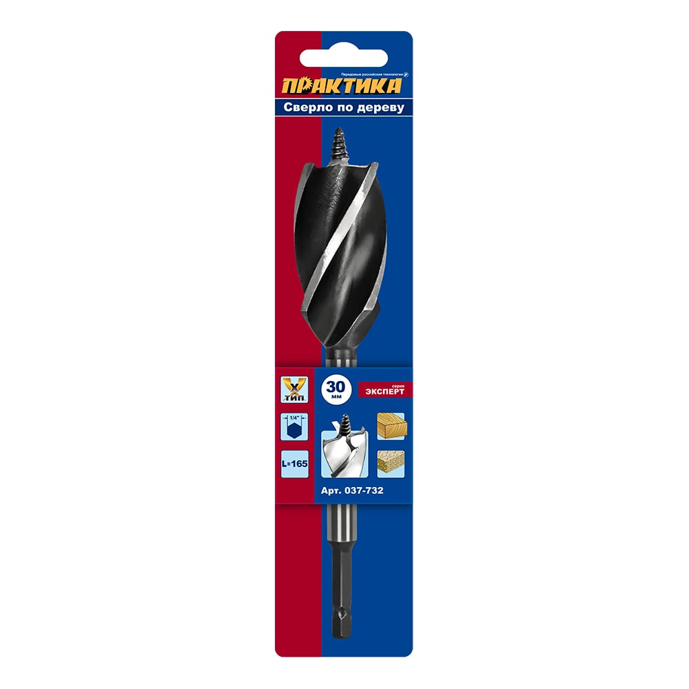 Сверло по дереву X-тип (30x165 мм; в блистере) ПРАКТИКА 037-732