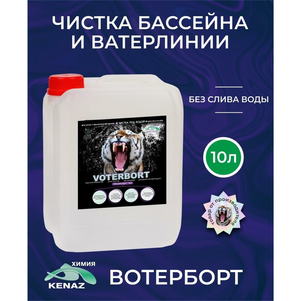 Средство для чистки бассейна без слива воды ВОТЕРБОРТ чистка стенок бассейна, ватерлинии, решеток, уборка бассейна, 10 л КЕНАЗ 809394