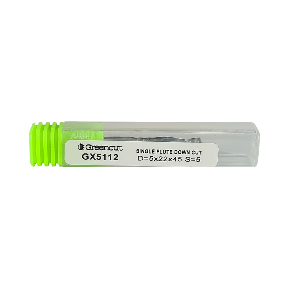 Фреза спиральная однозаходная нижний рез для ЧПУ (5x22x45 мм; S=5 мм; Z1) Greencut GX5112