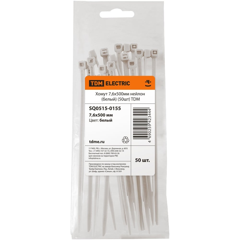 Хомут TDM ELECTRIC 7,6х500 мм, нейлон, белый, 50 шт. SQ0515-0155