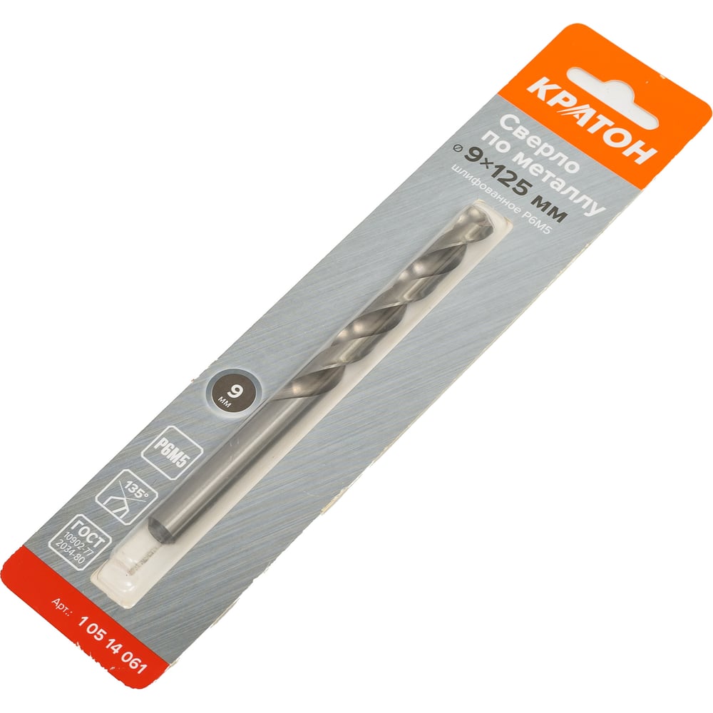 Сверло по металлу шлифованное Р6М5 (9х125 мм) Кратон 1 05 14 061