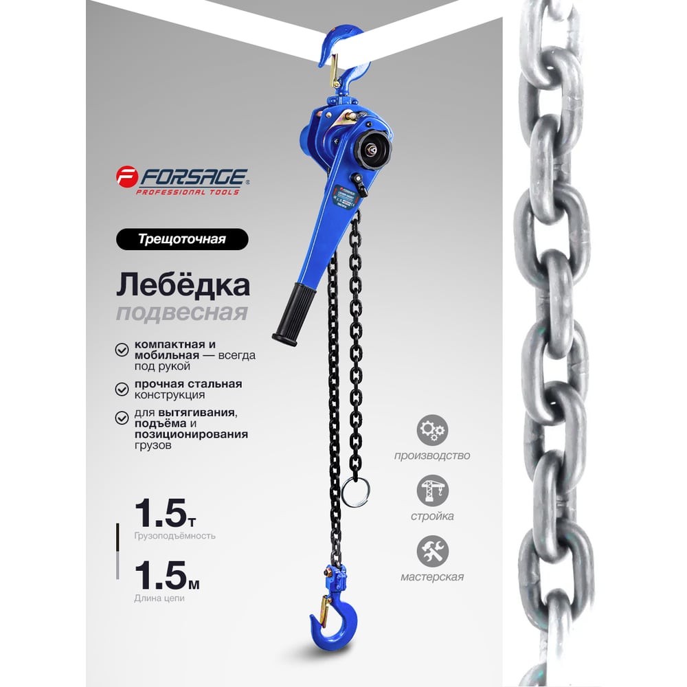 Подвесная трещоточная лебедка Forsage 1.5т F-TRC7015/TR/(4031)