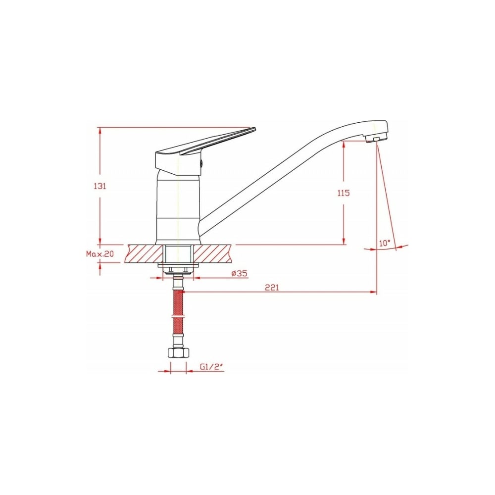 Смеситель для кухни Zollen Worms излив 220 мм, картридж 40 мм WO73411432 448029